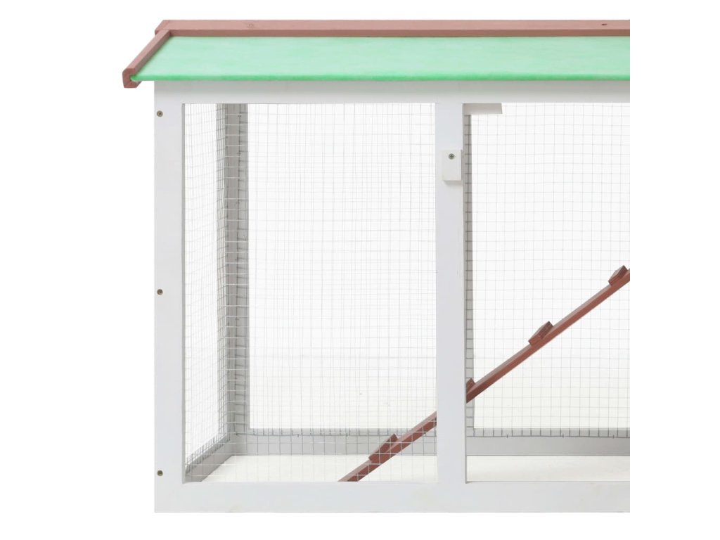 Králikáreň je vyrobená z jedľového masívu s náterom, ktorý je pre zvieratá bezpečný a zaručuje dlhú životnosť. Asfaltová strieška ochráni vašich chlpatých kamarátov pred nepriaznivým počasím, Vyvýšené okraje sa postarajú o to, aby boli vaše malé zvieratá v bezpečí, suchu a teple, a to najmä počas upršaných dní. Zviera môže jednoducho prejsť na vyššie poschodie po praktickej rampe. Králikáreň je navrhnutá tak, aby si nevyžadovala náročnú údržbu, a preto je vybavená odnímateľným dnom pre jednoduché čistenie. Vonkajší výbeh s trvácnym oplotením poskytuje dostatočné prúdenie vzduchu a postará sa o to, aby sa zvieratá nedostali von a aby boli chránené pred dravcami. Uzamykacie dvierka chránia vašich domácich miláčikov a umožňujú jednoduchý prístup.
