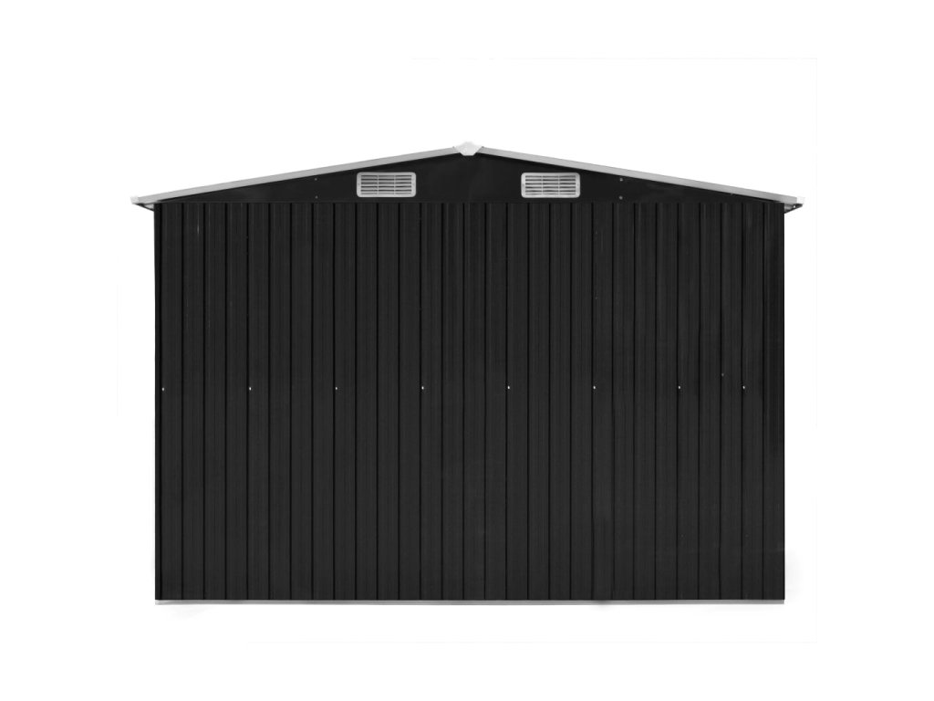 Na prednej aj zadnej strane záhradného domčeka sa nachádzajú vetracie otvory, ktoré zabezpečujú efektívne vetranie. Dvojité posuvné dvere v prednej časti umožňujú jednoduchý prístup do domčeka. Vďaka pozinkovanej oceľovej konštrukcii a práškovej povrchovej úprave je táto kôlňa na náradie trvácna a pevná.